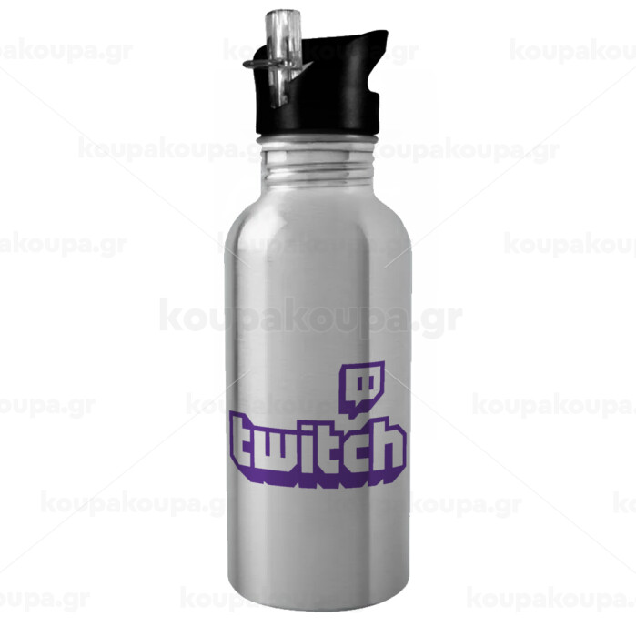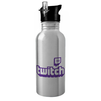 Twitch, Water bottle Silver with straw, stainless steel 600ml