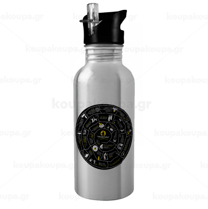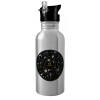 Προχίστορας, Water bottle Silver with straw, stainless steel 600ml