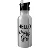 Hello pretty girl, Water bottle Silver with straw, stainless steel 600ml