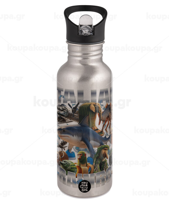 Bottle made of (stainless steel) 600ml with colorful high-quality printing with vivid colors and durability over time. Straw top lid. Hand wash recommended. Suitable for children.