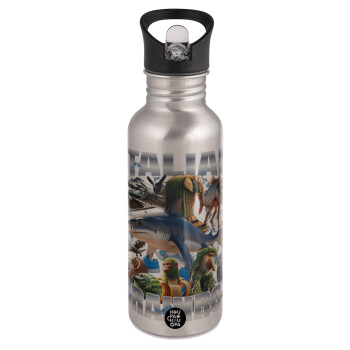 Italian Brainrot, Water bottle Silver with straw, stainless steel 600ml