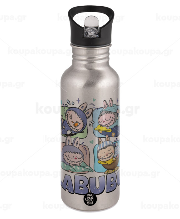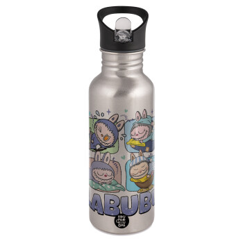 Labubu, Water bottle Silver with straw, stainless steel 600ml
