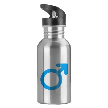 MALE, Water bottle Silver with straw, stainless steel 600ml