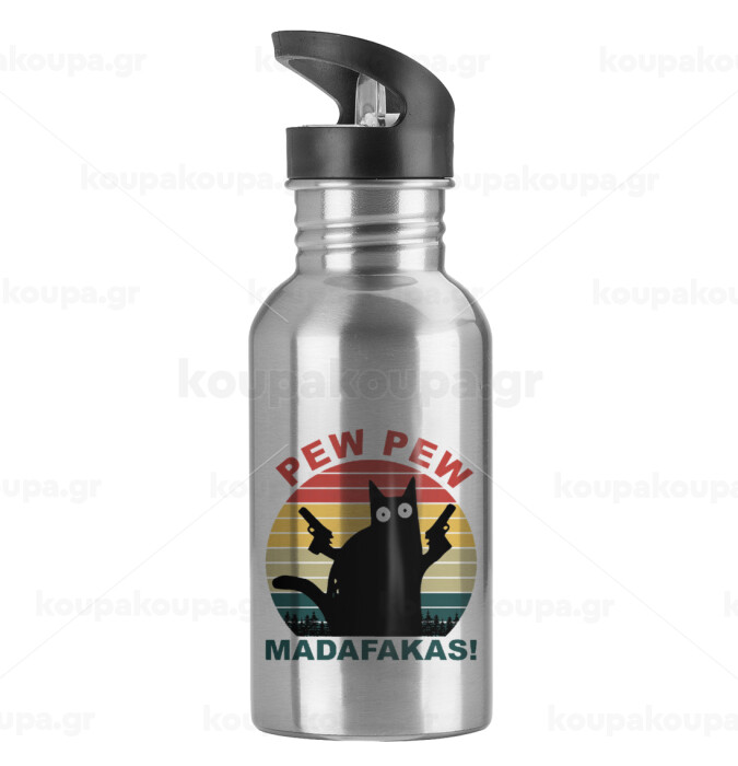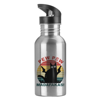 PEW PEW madafakas, Water bottle Silver with straw, stainless steel 600ml