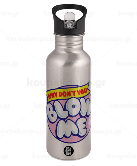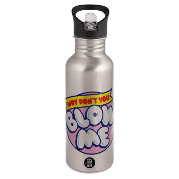 Why Don't You Blow Me Funny, Water bottle Silver with straw, stainless steel 600ml