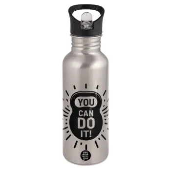 You can do it, Water bottle Silver with straw, stainless steel 600ml