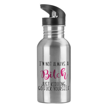 I'm not always a bitch, just kidding go f..k yourself , Water bottle Silver with straw, stainless steel 600ml