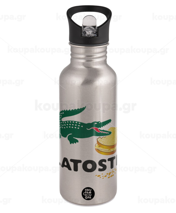 Latoste, Water bottle Silver with straw, stainless steel 600ml