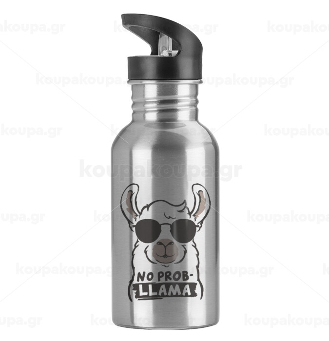 No Prob Llama, Water bottle Silver with straw, stainless steel 600ml