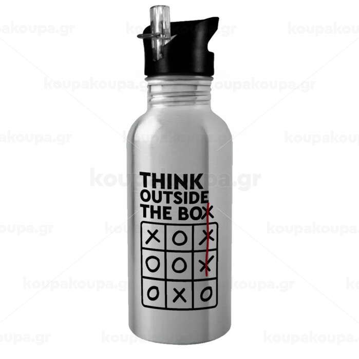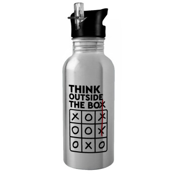 Think outside the BOX, Water bottle Silver with straw, stainless steel 600ml