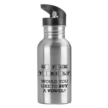 Wheel of fortune, go f..k yourself, Water bottle Silver with straw, stainless steel 600ml