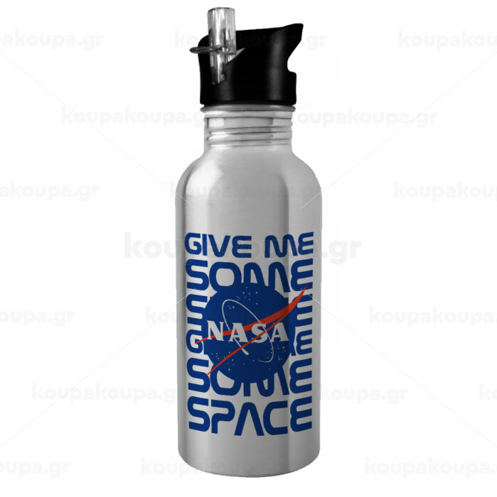 NASA give me some space, Water bottle Silver with straw, stainless steel 600ml