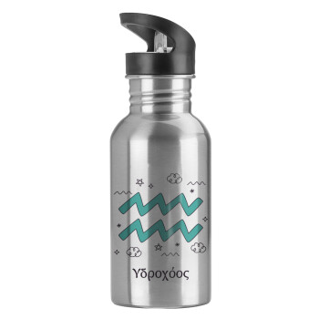 Ζώδια Υδροχόος, Water bottle Silver with straw, stainless steel 600ml