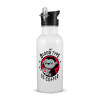 My blood type is coffee, White water bottle with straw, stainless steel 600ml