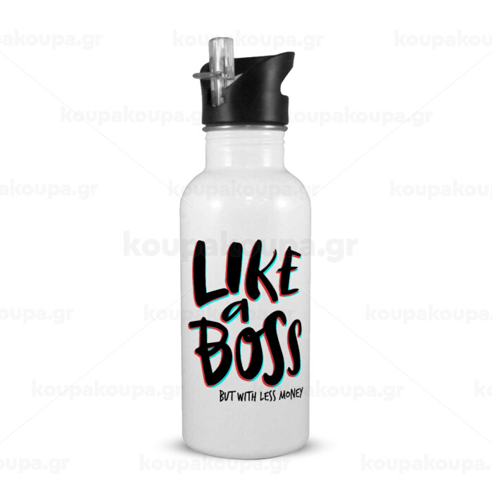 Like a boss, but with less money!!!, White water bottle with straw, stainless steel 600ml