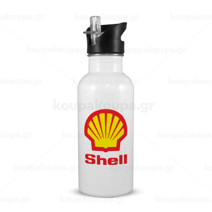 Πρατήριο καυσίμων SHELL, White water bottle with straw, stainless steel 600ml