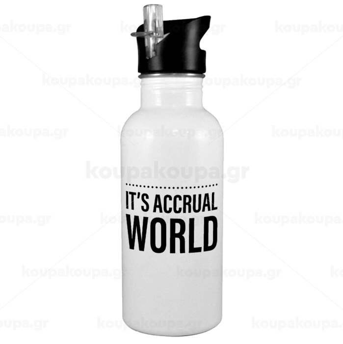 It's an accrual world, White water bottle with straw, stainless steel 600ml