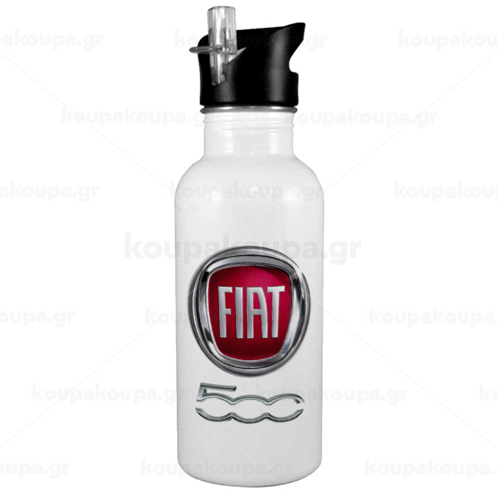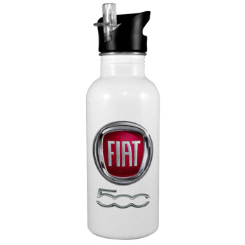FIAT 500, White water bottle with straw, stainless steel 600ml