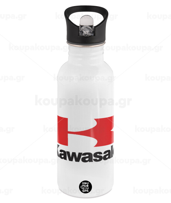Kawasaki, White water bottle with straw, stainless steel 600ml