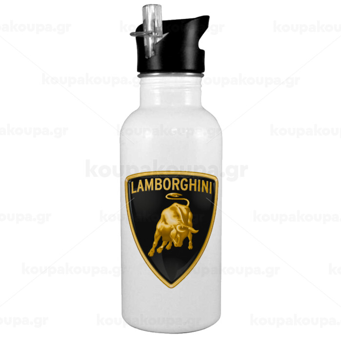 Lamborghini, White water bottle with straw, stainless steel 600ml