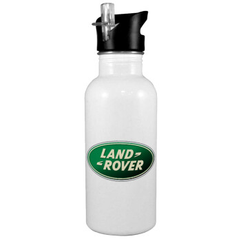 Land Rover, White water bottle with straw, stainless steel 600ml