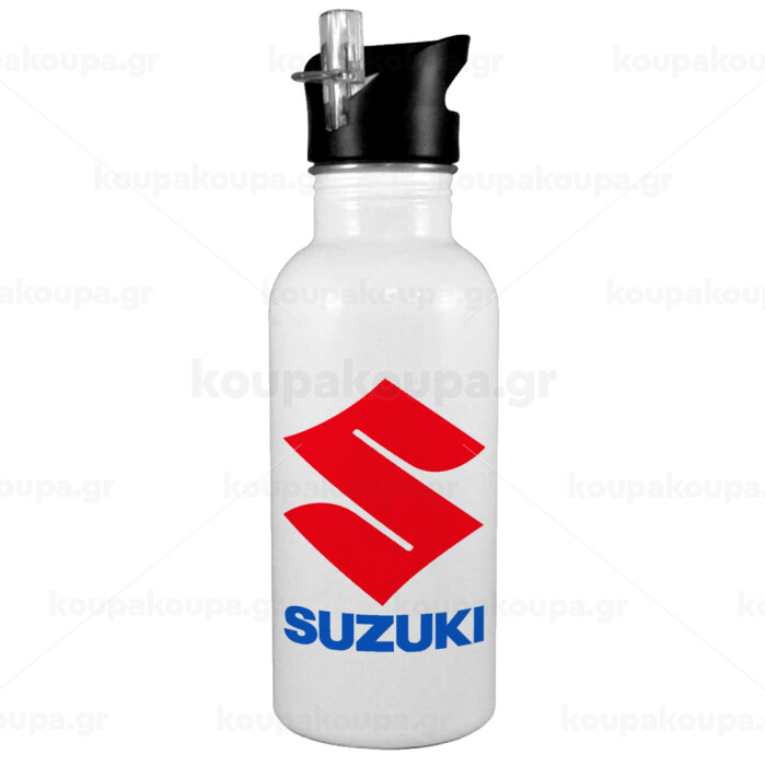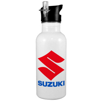 SUZUKI, White water bottle with straw, stainless steel 600ml