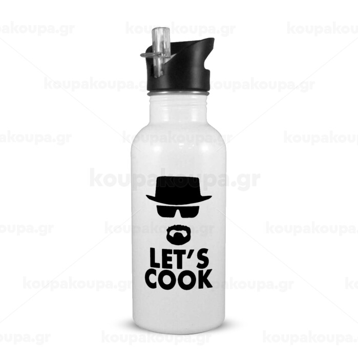Let's cook, White water bottle with straw, stainless steel 600ml