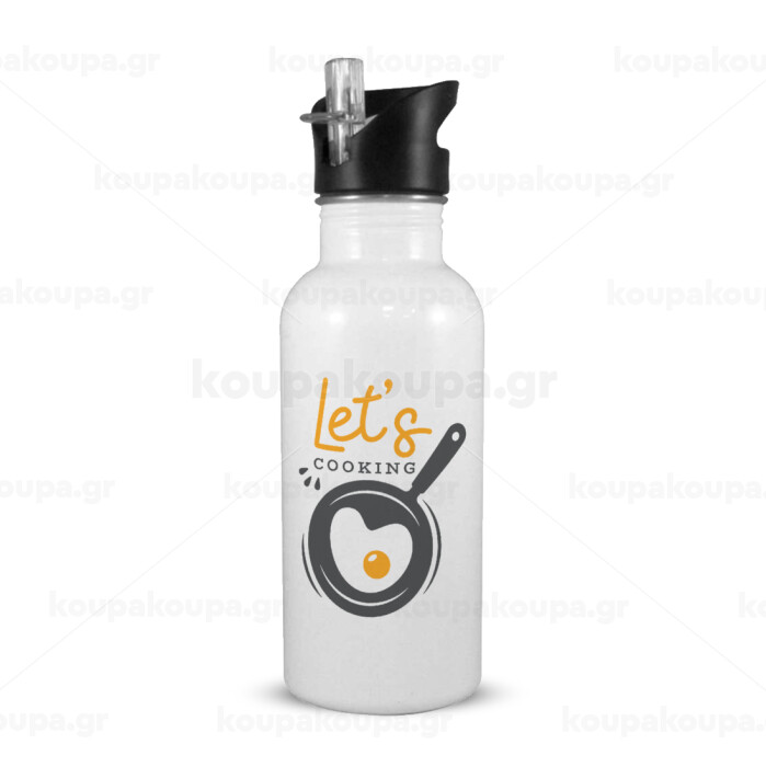Let's cooking, White water bottle with straw, stainless steel 600ml