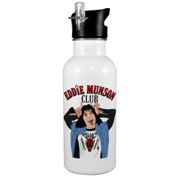 Eddie Munson, White water bottle with straw, stainless steel 600ml