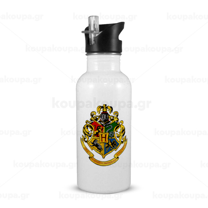 Hogwart's, White water bottle with straw, stainless steel 600ml