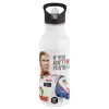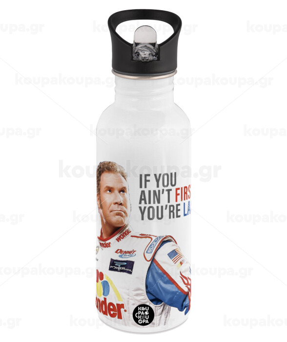 If You Ain't First You're Last Ricky Bobby, Talladega Nights, White water bottle with straw, stainless steel 600ml