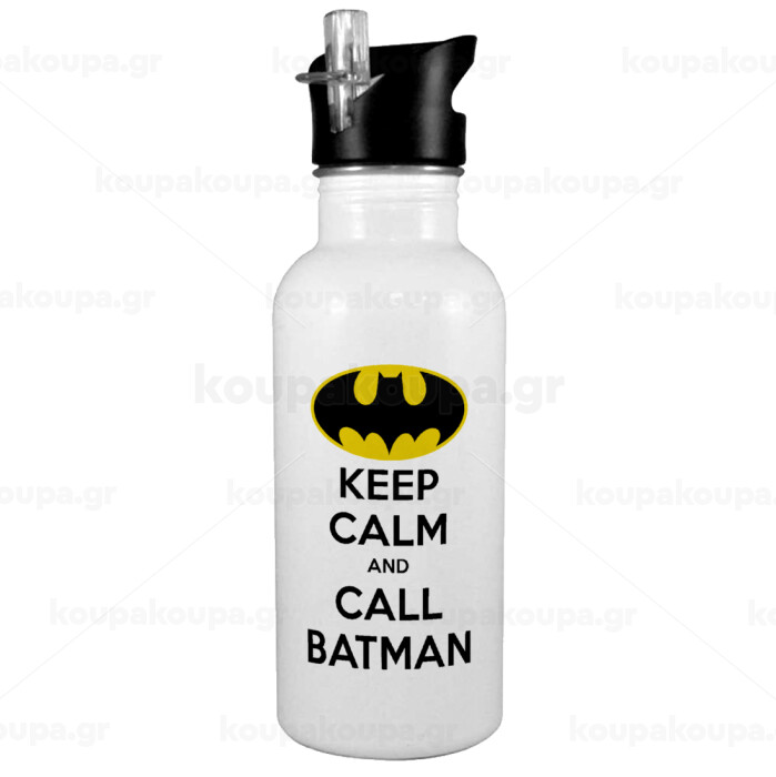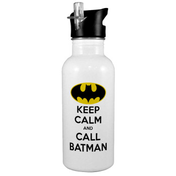 KEEP CALM & Call BATMAN, White water bottle with straw, stainless steel 600ml