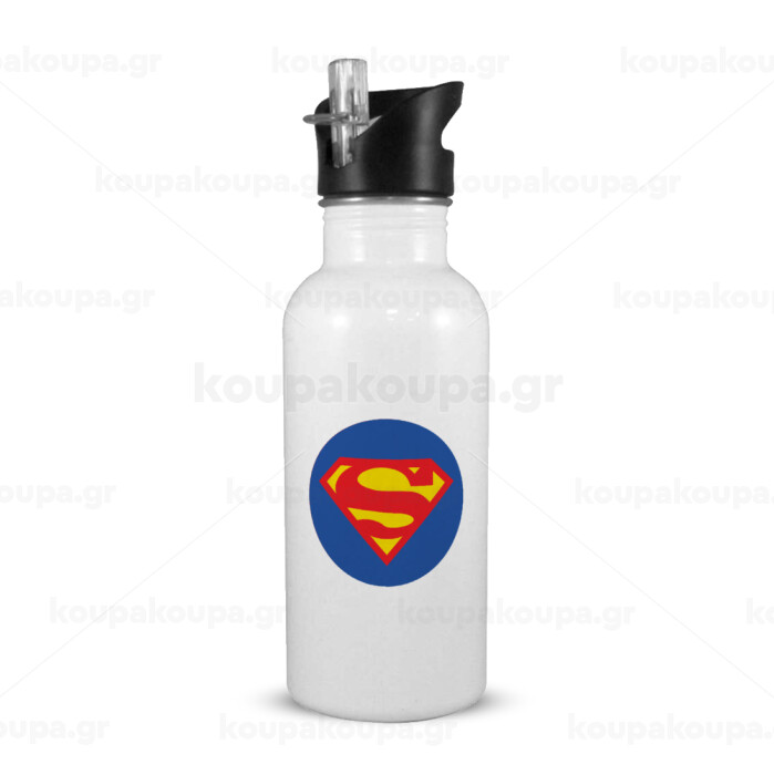 Superman, White water bottle with straw, stainless steel 600ml