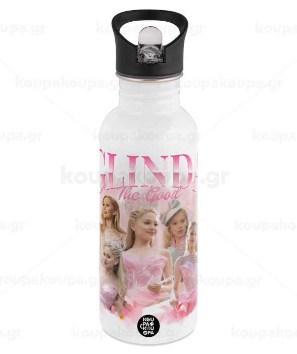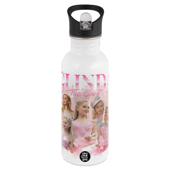 Wicked Glinda, White water bottle with straw, stainless steel 600ml
