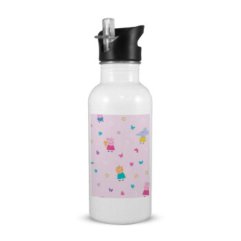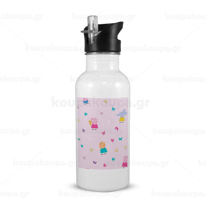 Πέππα το γουρουνάκι και οι φίλοι της, White water bottle with straw, stainless steel 600ml