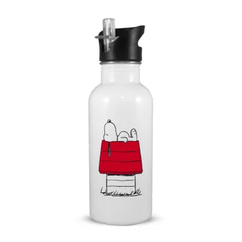 Το σπίτι του snoopy, White water bottle with straw, stainless steel 600ml