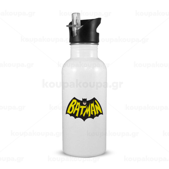 Batman classic logo, White water bottle with straw, stainless steel 600ml