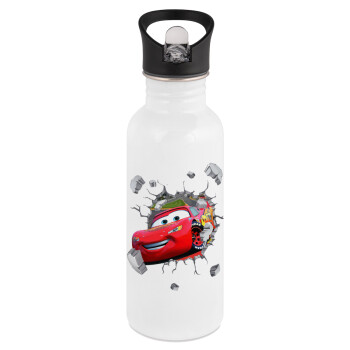 Brick McQueen, White water bottle with straw, stainless steel 600ml