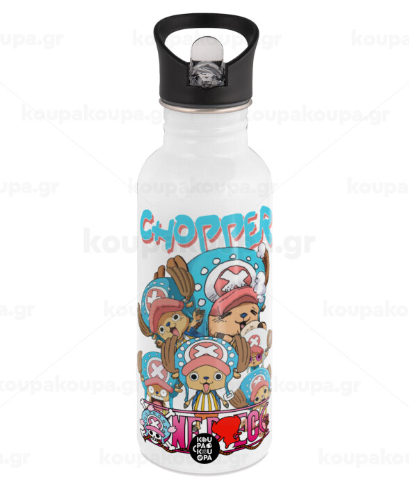 Chopper One Piece, White water bottle with straw, stainless steel 600ml