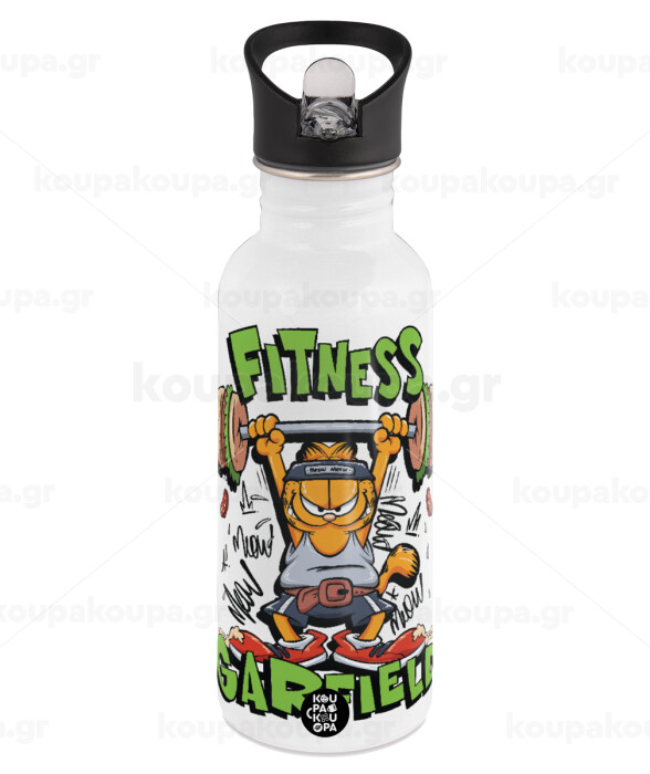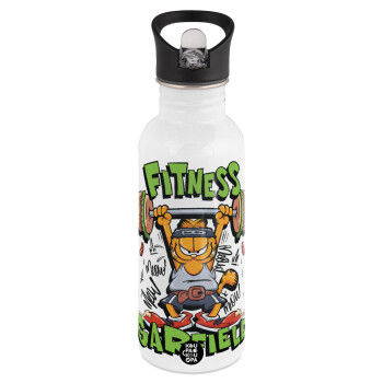 Garfield Fitness, White water bottle with straw, stainless steel 600ml