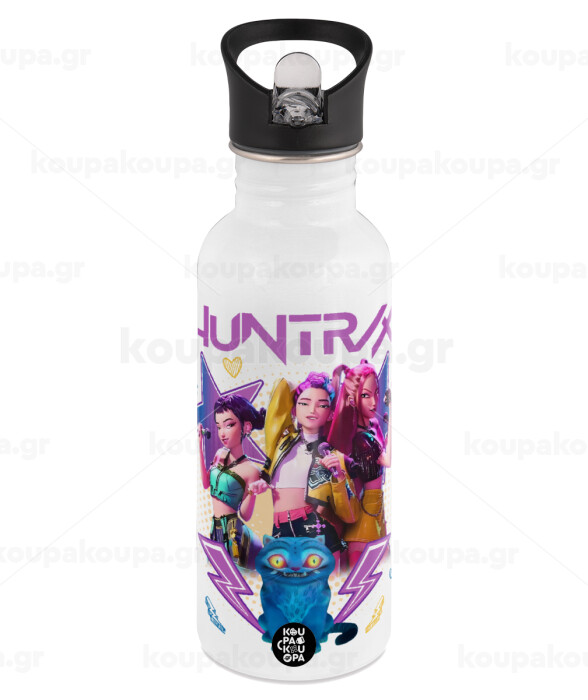 Huntrix K-pop series, White water bottle with straw, stainless steel 600ml