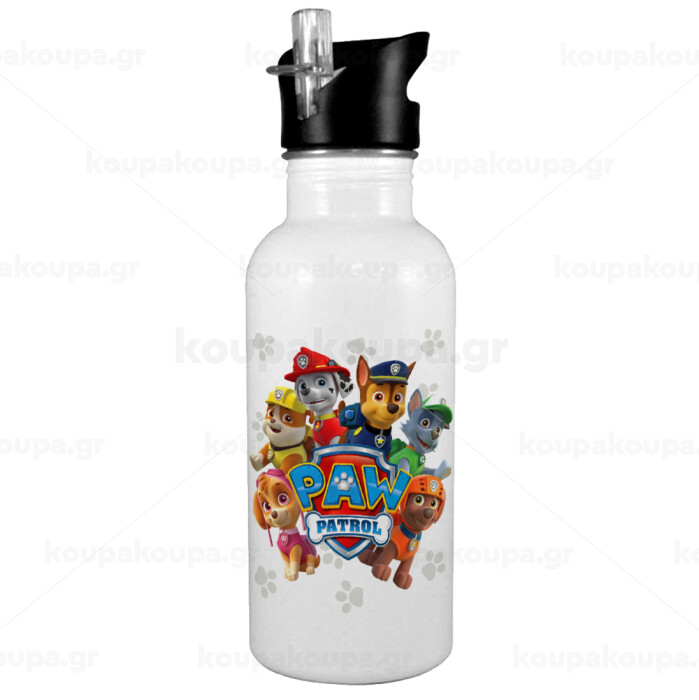 PAW patrol, White water bottle with straw, stainless steel 600ml