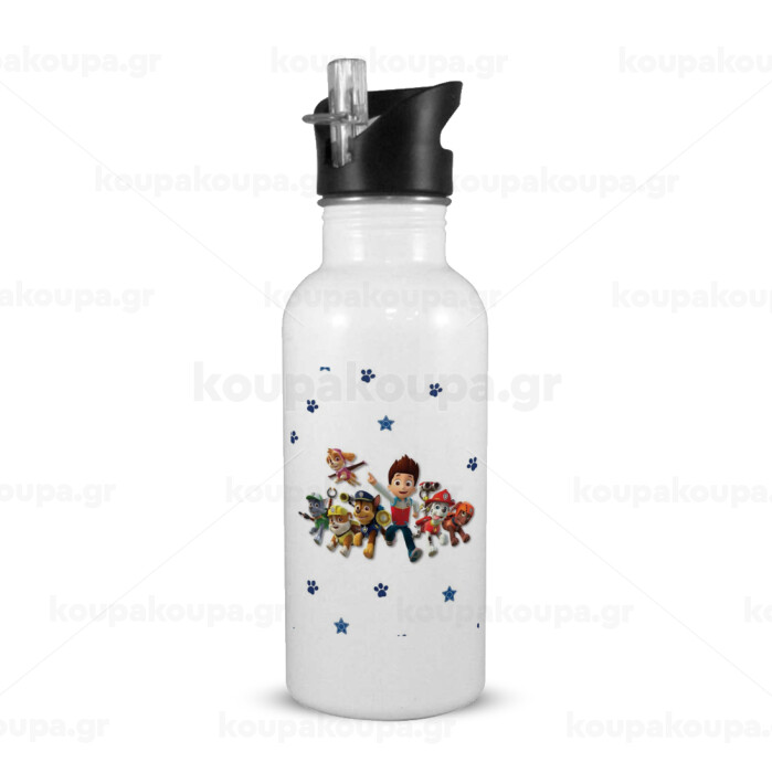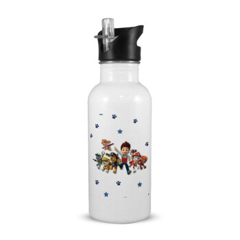 paw patrol, White water bottle with straw, stainless steel 600ml
