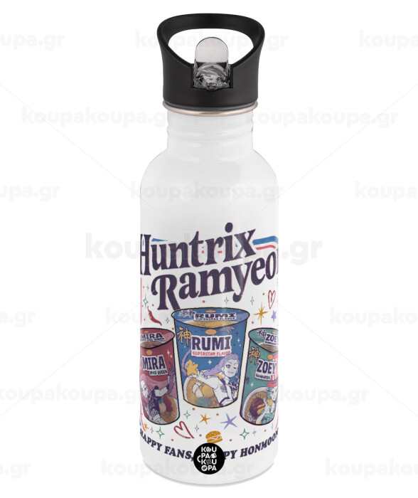 Ramyeon Huntrix, White water bottle with straw, stainless steel 600ml