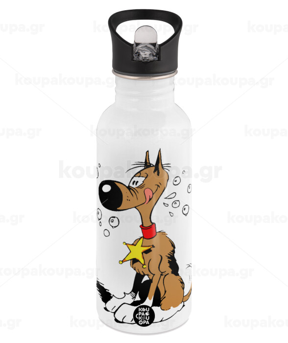 Rantanplan, White water bottle with straw, stainless steel 600ml