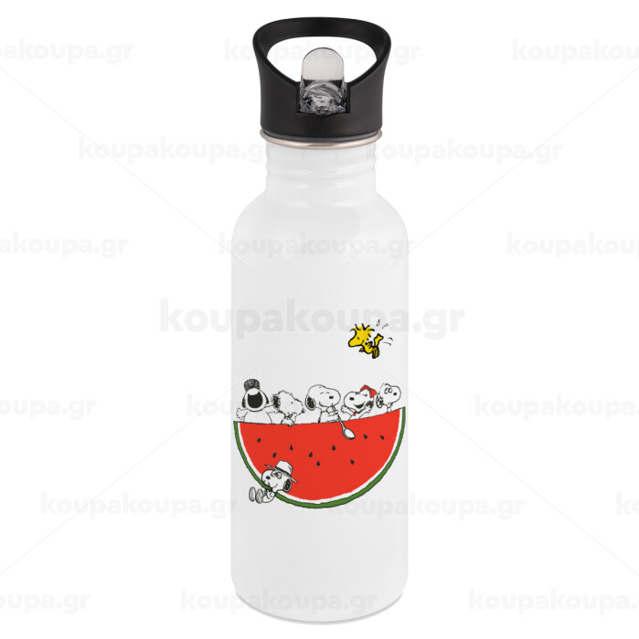 Snoopy summer, White water bottle with straw, stainless steel 600ml