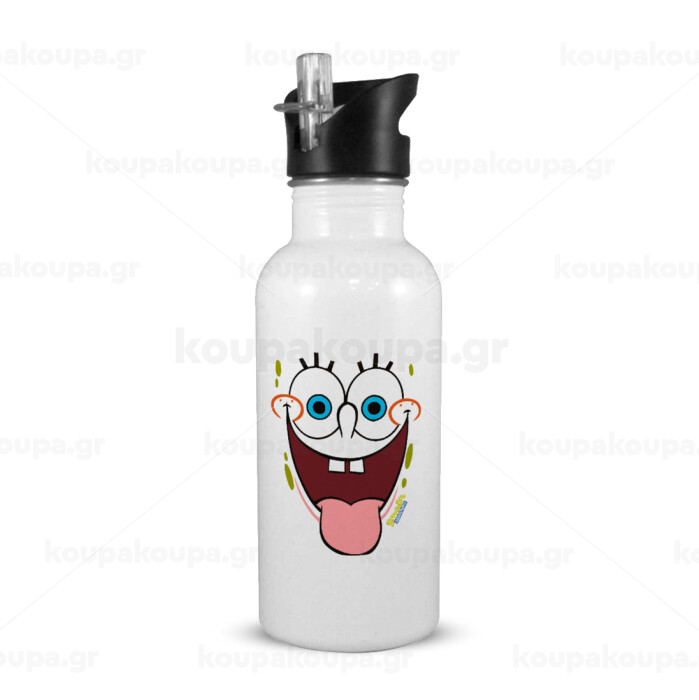 SpongeBob SquarePants smile, White water bottle with straw, stainless steel 600ml