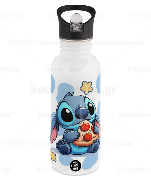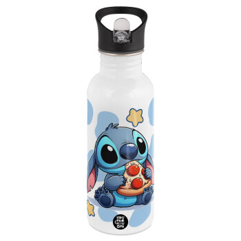Stitch Pizza, White water bottle with straw, stainless steel 600ml
