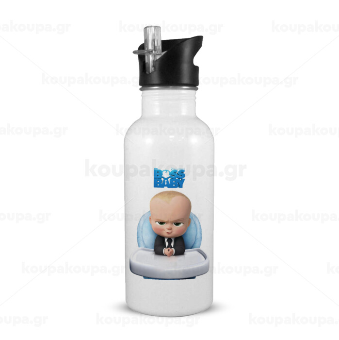 The boss baby, White water bottle with straw, stainless steel 600ml