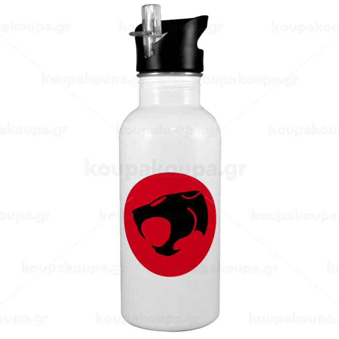 Thundercats, White water bottle with straw, stainless steel 600ml